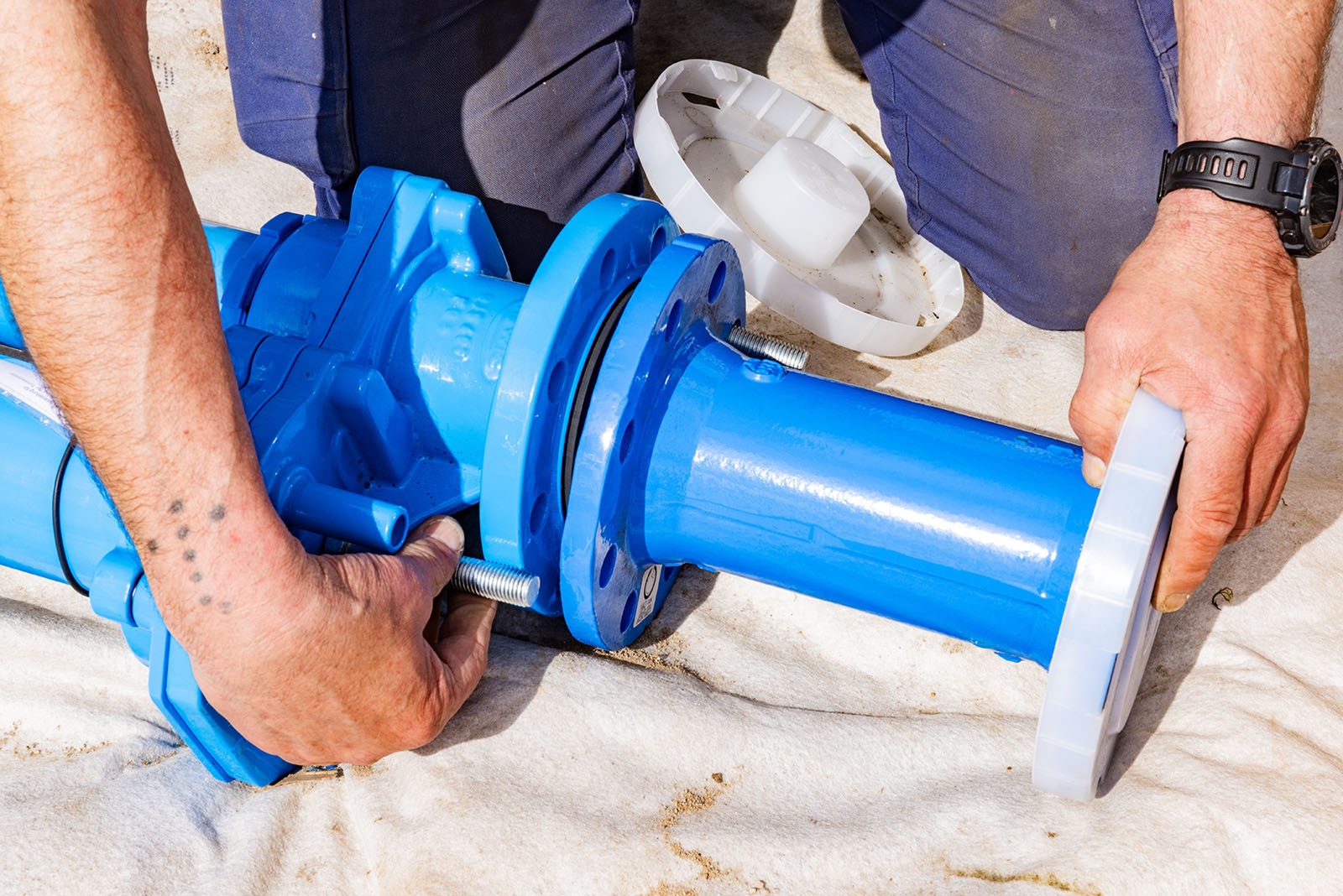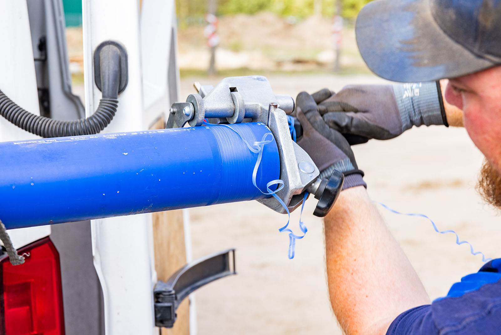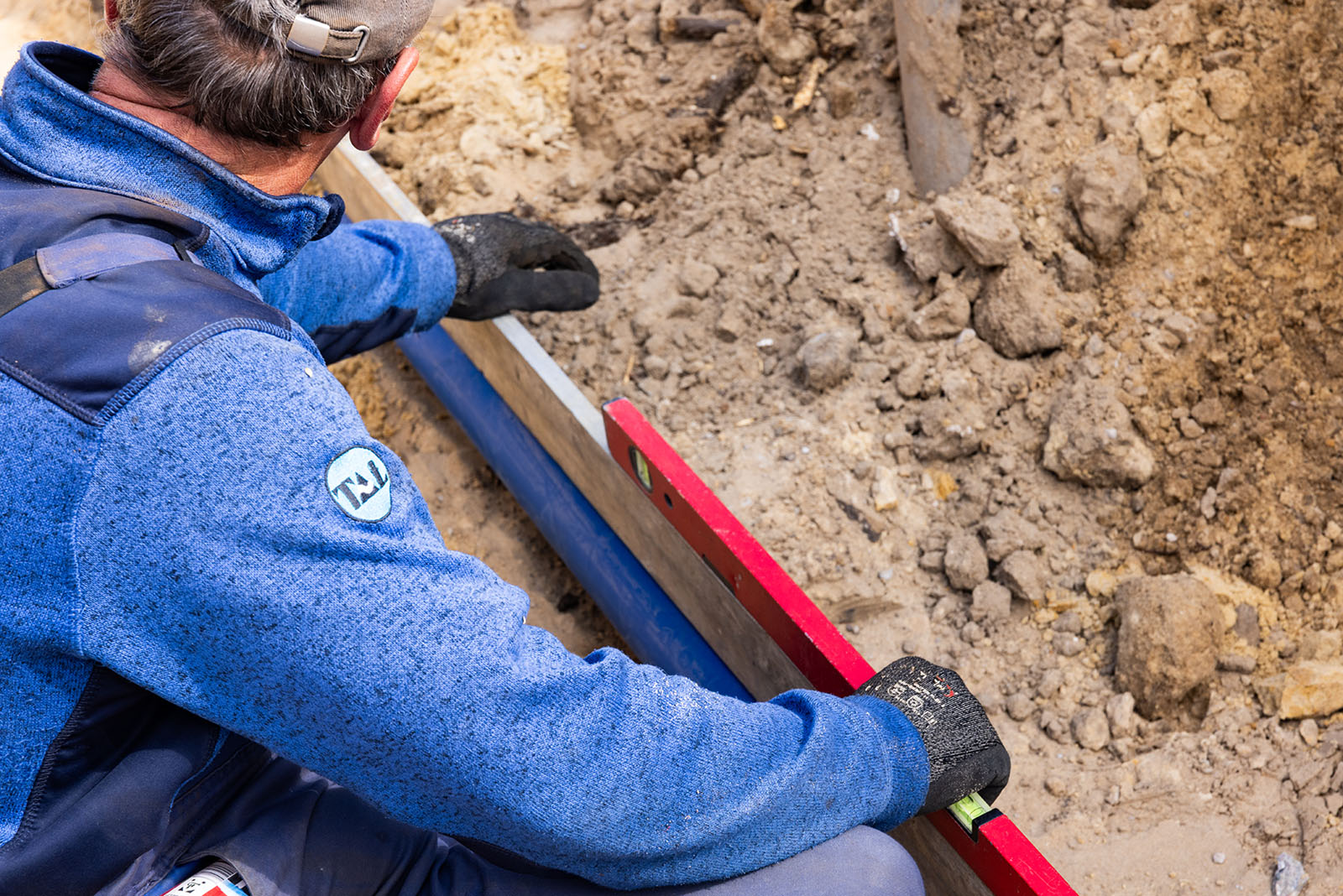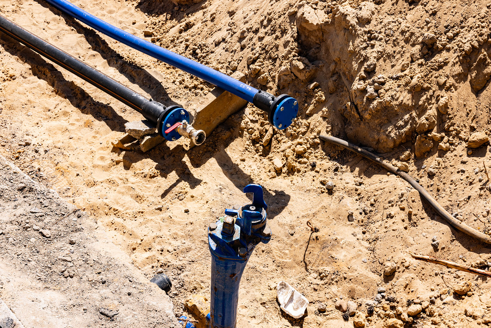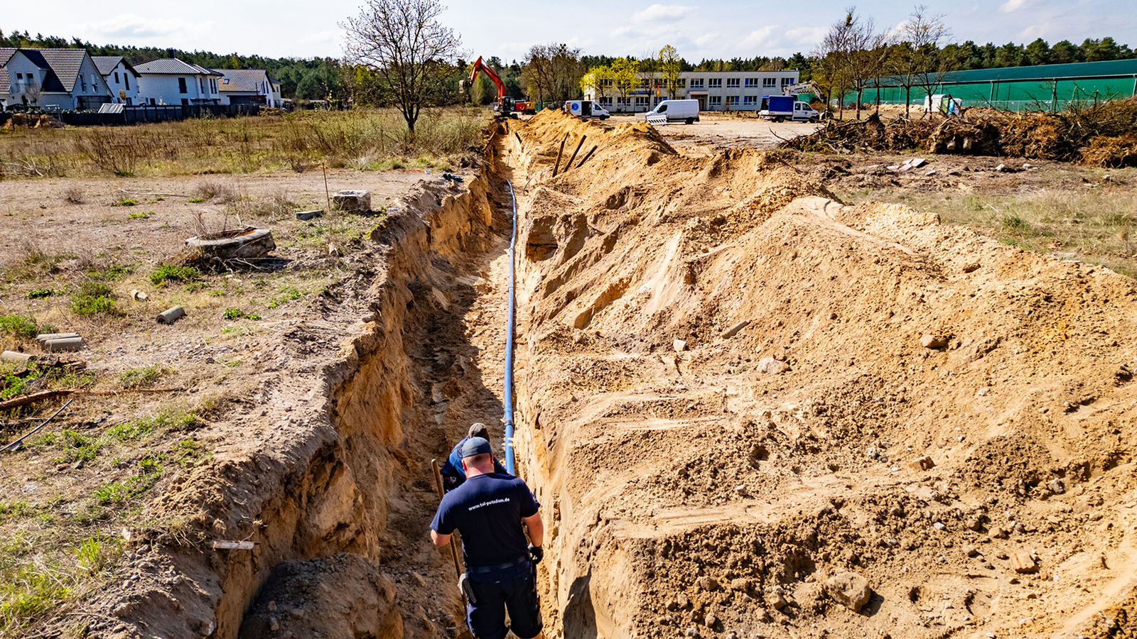Auch die Trinkwassernetze werden grundlegend ausgebaut. Insgesamt wurden 305 Meter PE-Rohr DA90x8,2 verlegt, ergänzt durch 125 Meter Hausanschlussleitungen aus PE50x4,6. Genau wie beim Abwasser entstehen hier ebenfalls 16 neue Hausanschlüsse.