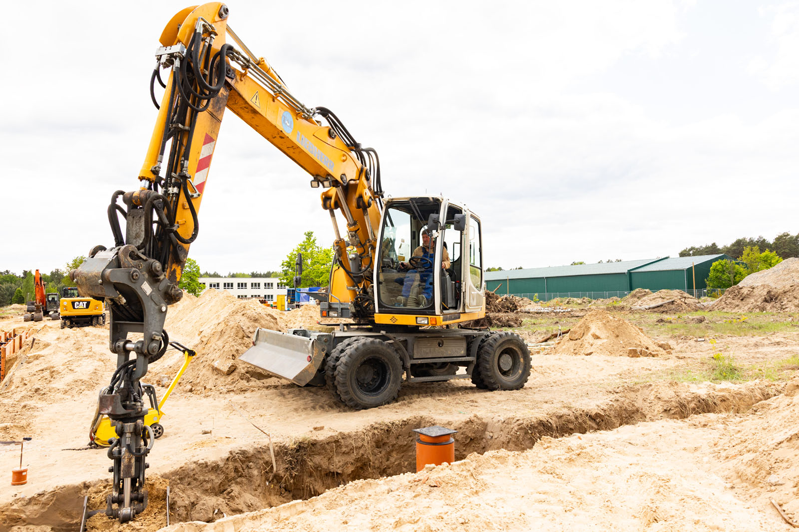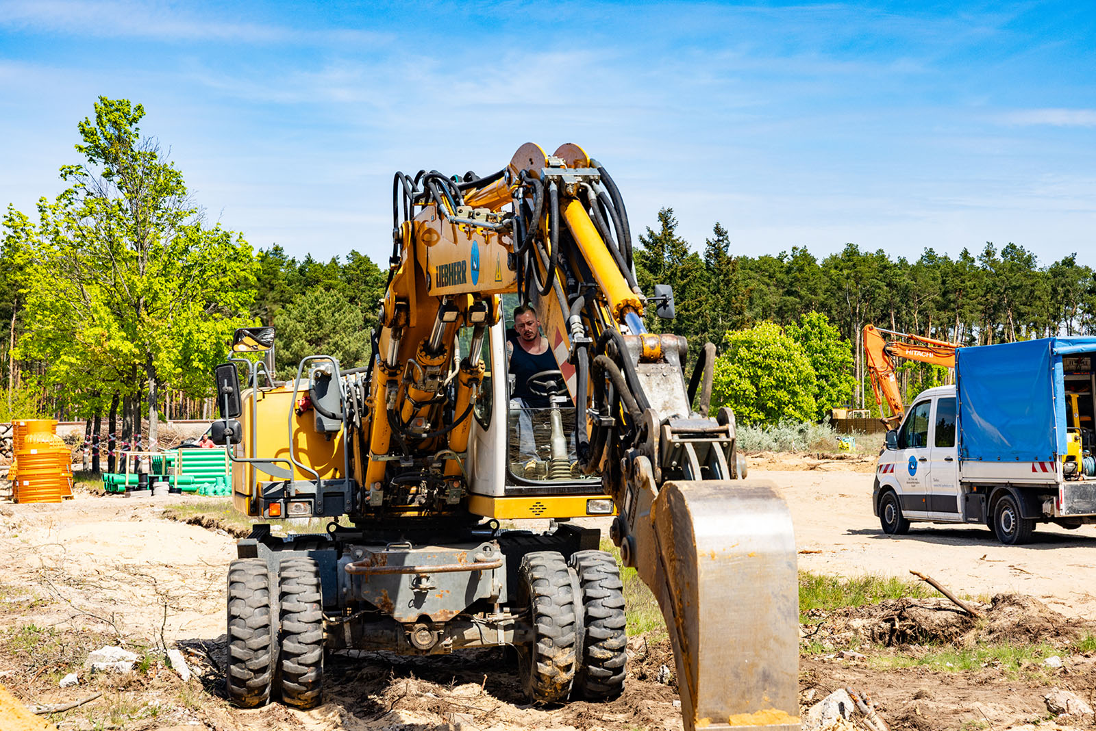 Für die fachgerechte Umsetzung stehen leistungsstarke Baumaschinen im Einsatz, darunter ein Radlader Reico A35, ein Bagger Liebherr LH312 sowie ein Minibagger ET18. Je nach Bauphase arbeiten zwischen zwei und sechs unserer Kollegen vor Ort.