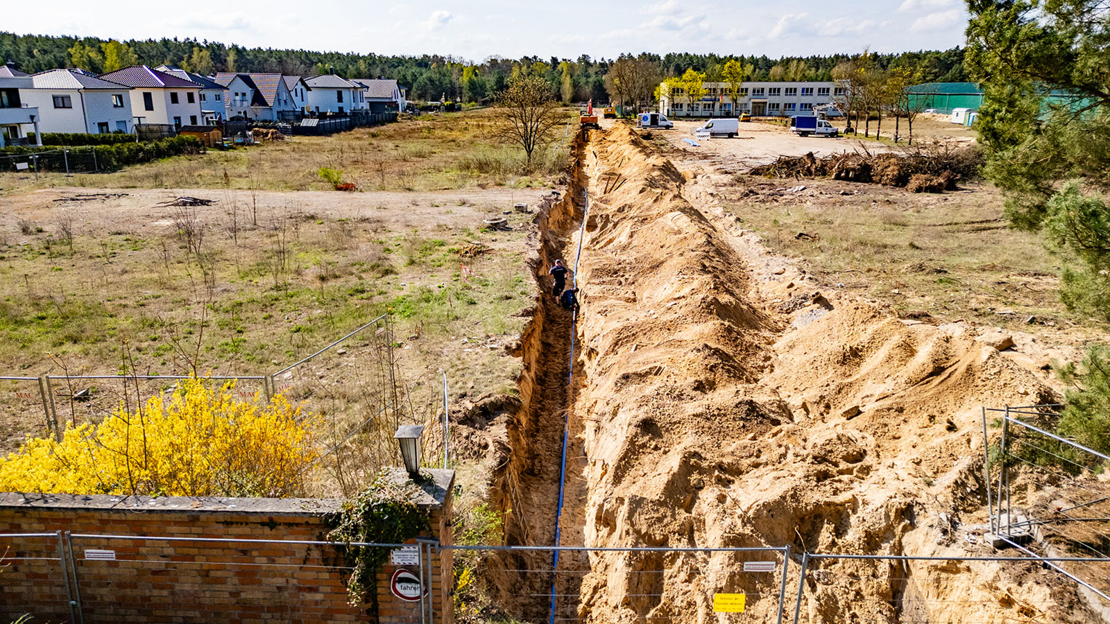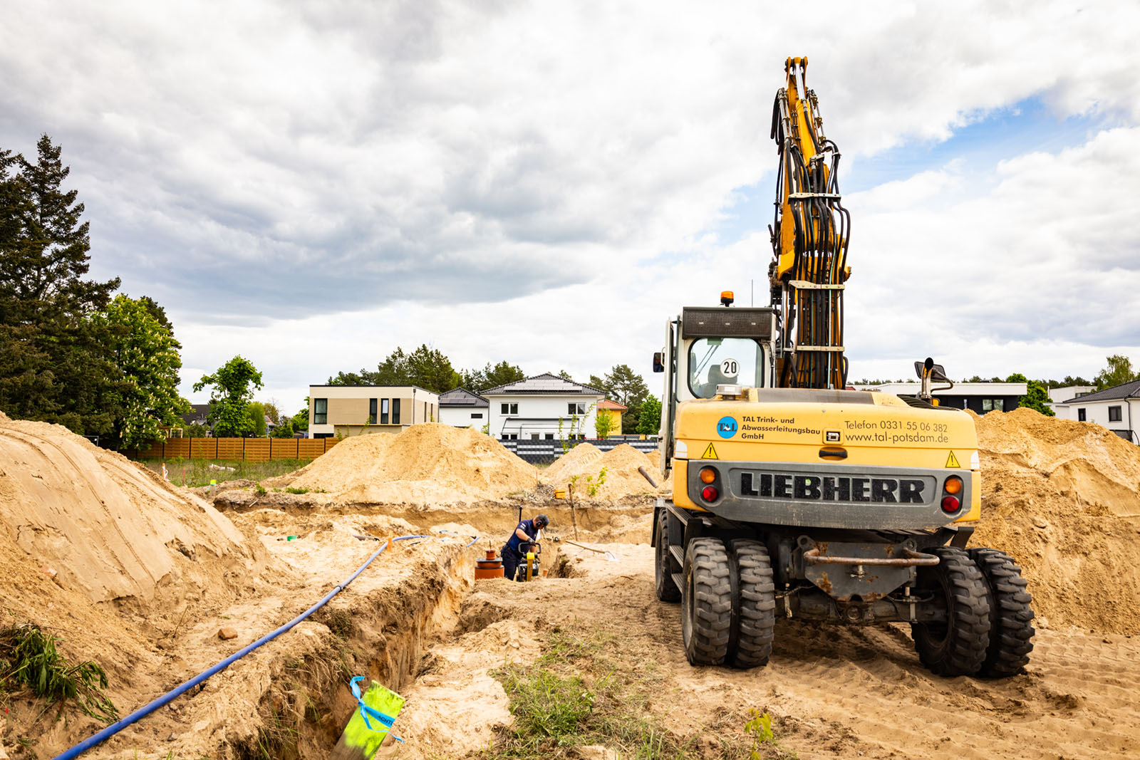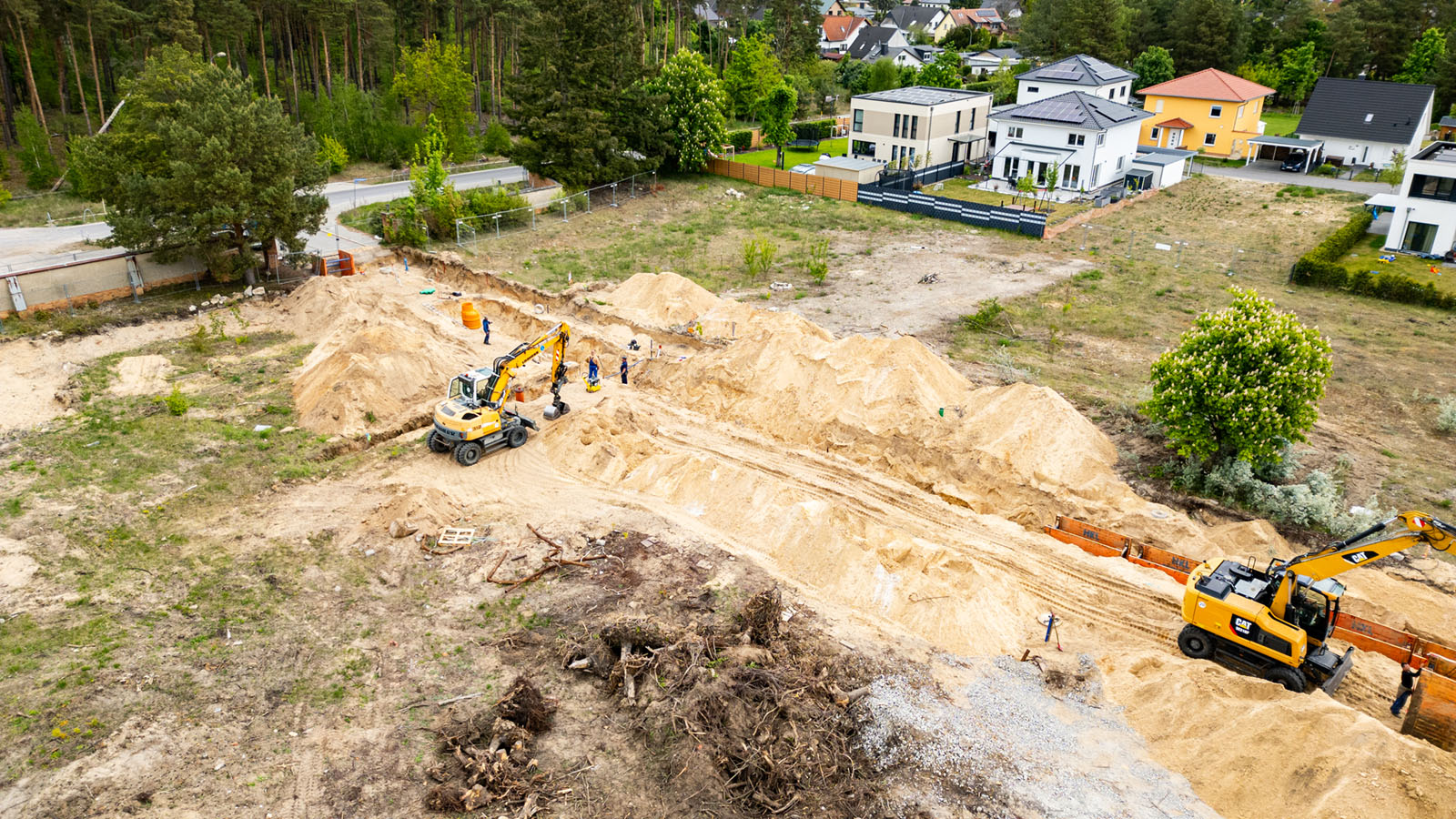 Zwischen dem 14. April und dem 22. Oktober 2025 liefen in Ludwigsfelde die umfassenden Erschließungsarbeiten für das Wohnprojekt „Wohnen an den Neckergärten“ in der Spreestraße. Im Auftrag der SolWo Invest GmbH übernimmt unser Team sämtliche Leistungen für die Herstellung der Abwasser- und Trinkwasserversorgung. Die Arbeiten erfolgen abschnittsweise, sodass ein kontinuierlicher Baufortschritt gewährleistet ist.