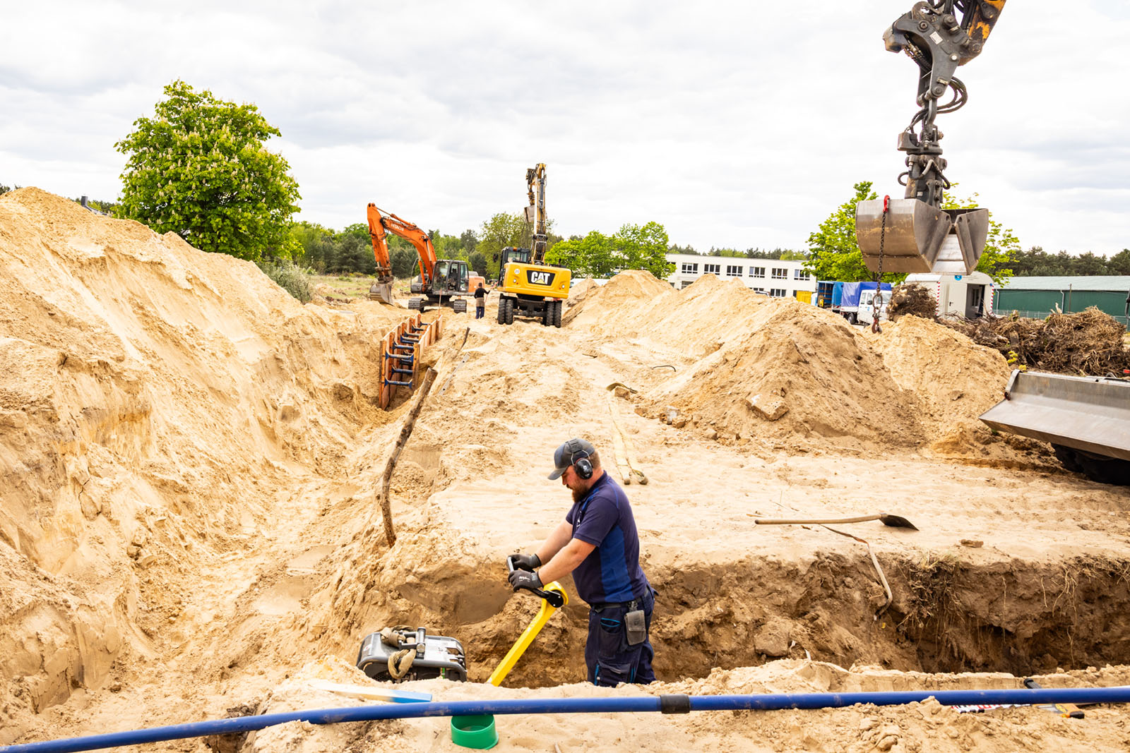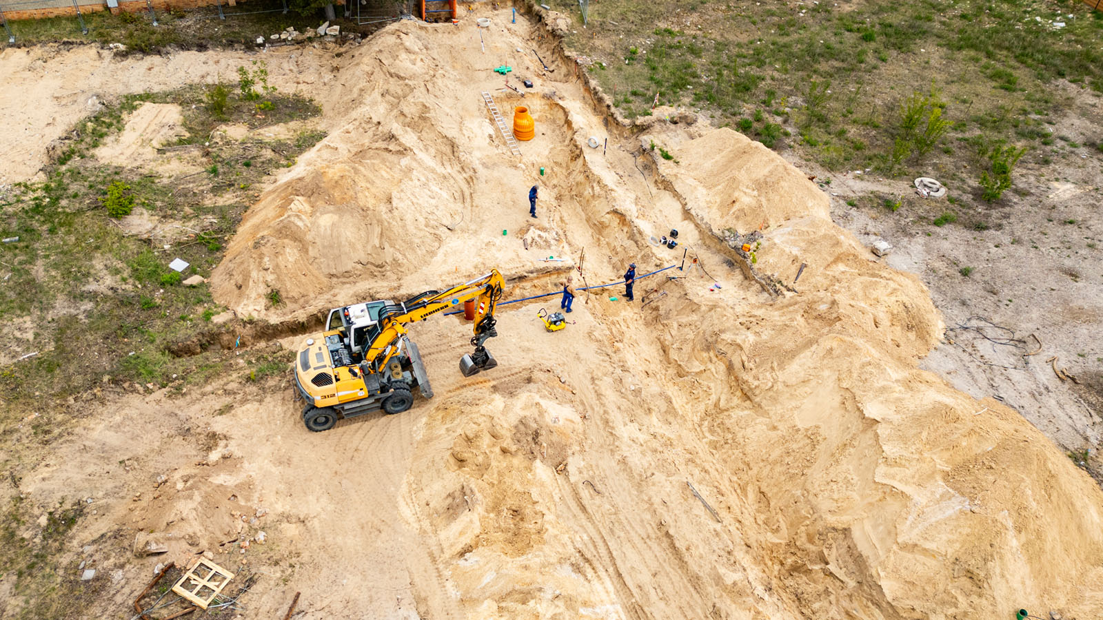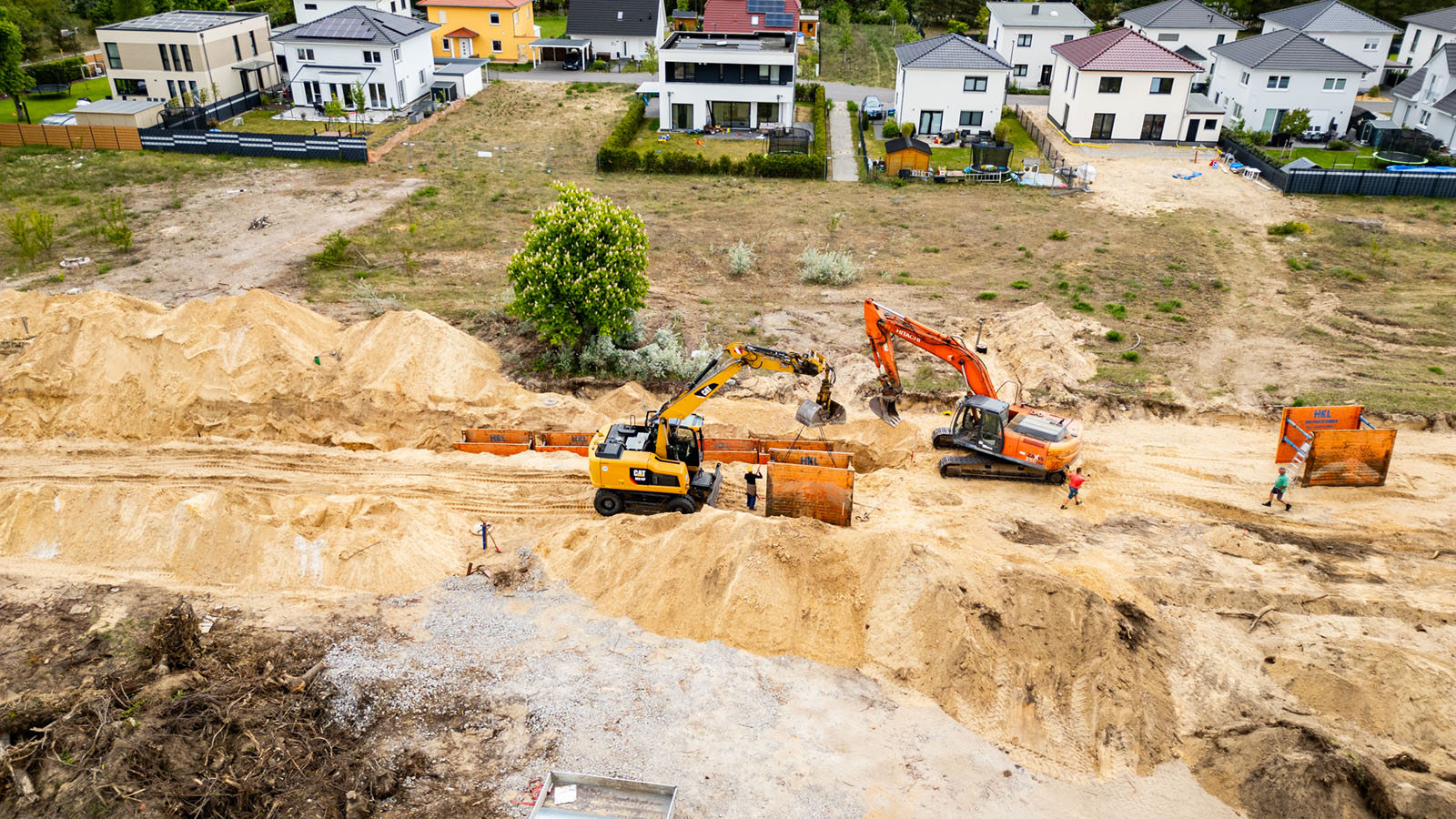 Zwischen dem 14. April und dem 22. Oktober 2025 liefen in Ludwigsfelde die umfassenden Erschließungsarbeiten für das Wohnprojekt „Wohnen an den Neckergärten“ in der Spreestraße. Im Auftrag der SolWo Invest GmbH übernimmt unser Team sämtliche Leistungen für die Herstellung der Abwasser- und Trinkwasserversorgung. Die Arbeiten erfolgen abschnittsweise, sodass ein kontinuierlicher Baufortschritt gewährleistet ist.