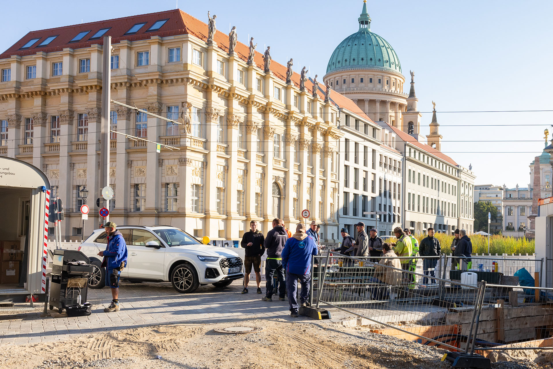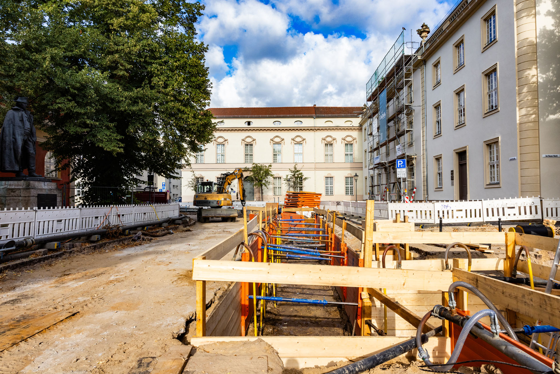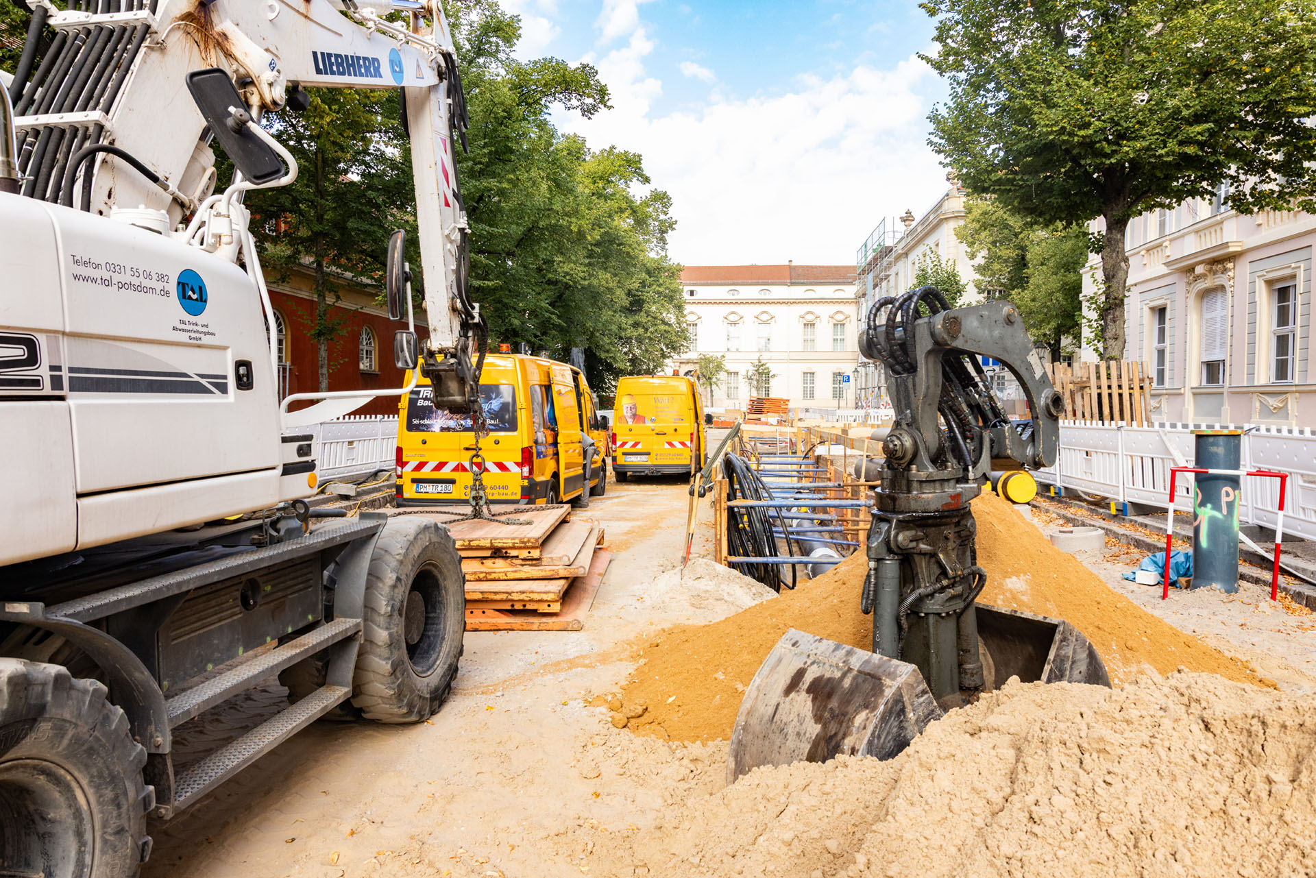 Die Energie und Wasser Potsdam GmbH (EWP) hat die Umverlegung der Fernwärmeleitungen in der Schloßstraße beauftragt. Im Rahmen dieses Projekts waren wir als Subunternehmer im Auftrag des Hauptunternehmers TRP Bau im Einsatz.